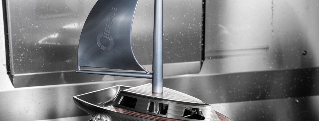 Additive machining with MPA technology and better milling all rolled into one. To give an impressive and somewhat striking example for a component produced by both Additive Manufacturing and subsequent machining to shape it, a sailing boat with a number of unique features was presented by Hermle in Gosheim, Germany.