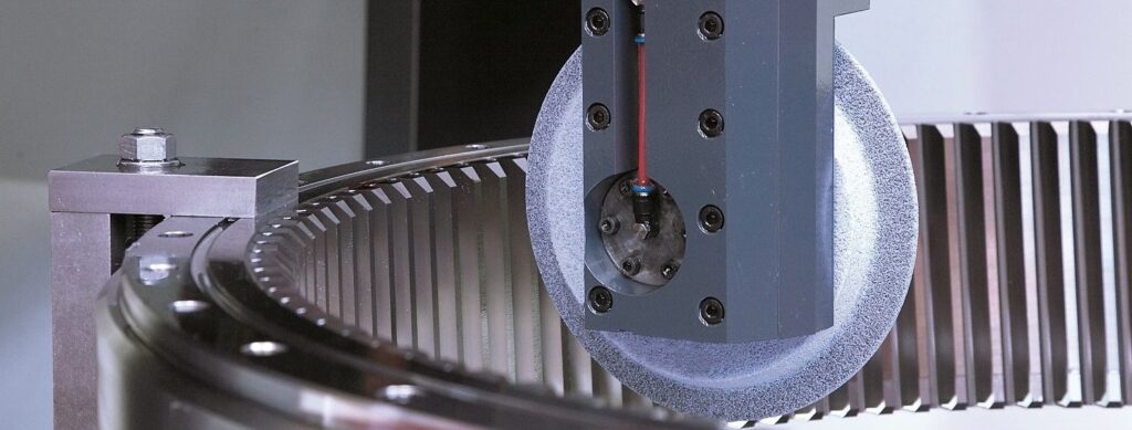Serial production of large gears requires a high level of quality, excellence and continuity in production. Particular emphasis is placed on maximum synergy between the grinding machine, the grinding process and the grinding wheel. After several successful trials on various Klingelnberg Höfler Rapid grinding machines carried out by Krebs & Riedel with customers in their production facilities, Krebs & Riedel has received several large orders for grinding large gears from abroad and has introduced the new premium grinding wheels with high process reliability. Krebs & Riedel is one of the world's leading manufacturers of grinding wheels for gear grinding in the automotive and EV sector. The family-owned company is also expanding into other sectors where large gears are manufactured with the new Blue Moon TZ premium product range. In recent years, wind power has been an important factor in reducing CO2 emissions. Wind turbines are getting bigger and more powerful, while production costs have to be reduced. This requires production methods that can produce the gears cost-effectively and in high quality, even with complex flank modifications. Gear sizes in wind power typically range from 800 to 4000 mm. Some gears can even reach a diameter of 8000 mm and weigh up to 100 tonnes. The most common size in the field of external gears is 1200 mm in diameter and ranges from module 12 to module 52. The profile grinding wheels typically have a diameter of 100 – 450 mm.